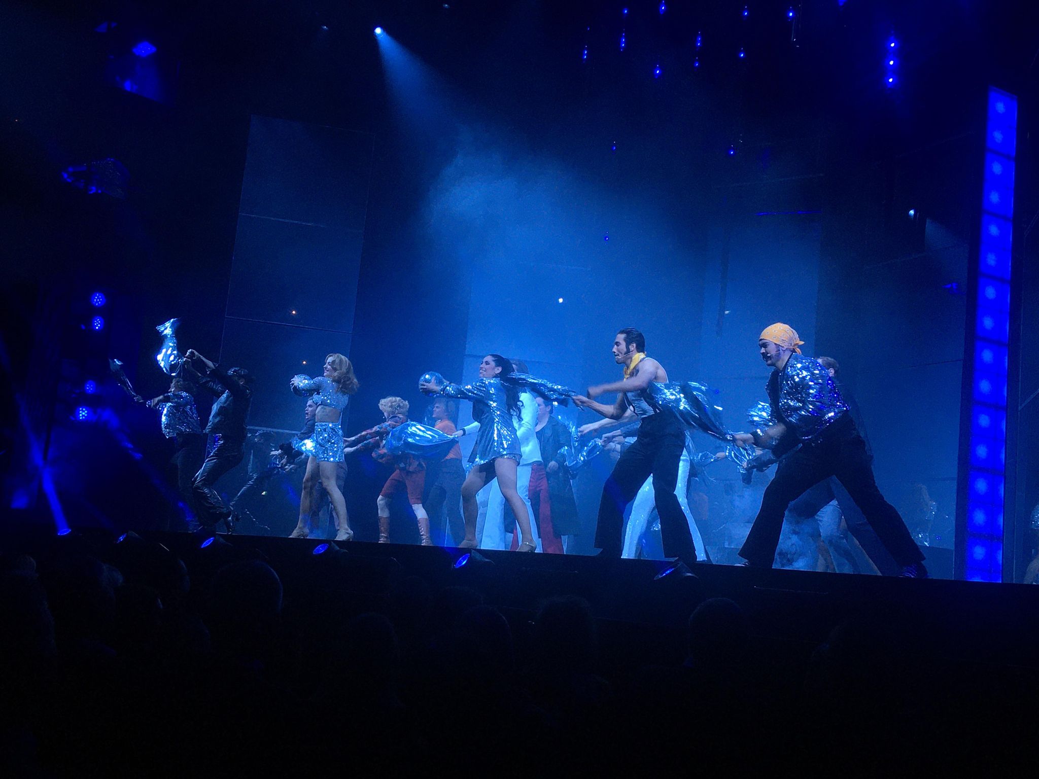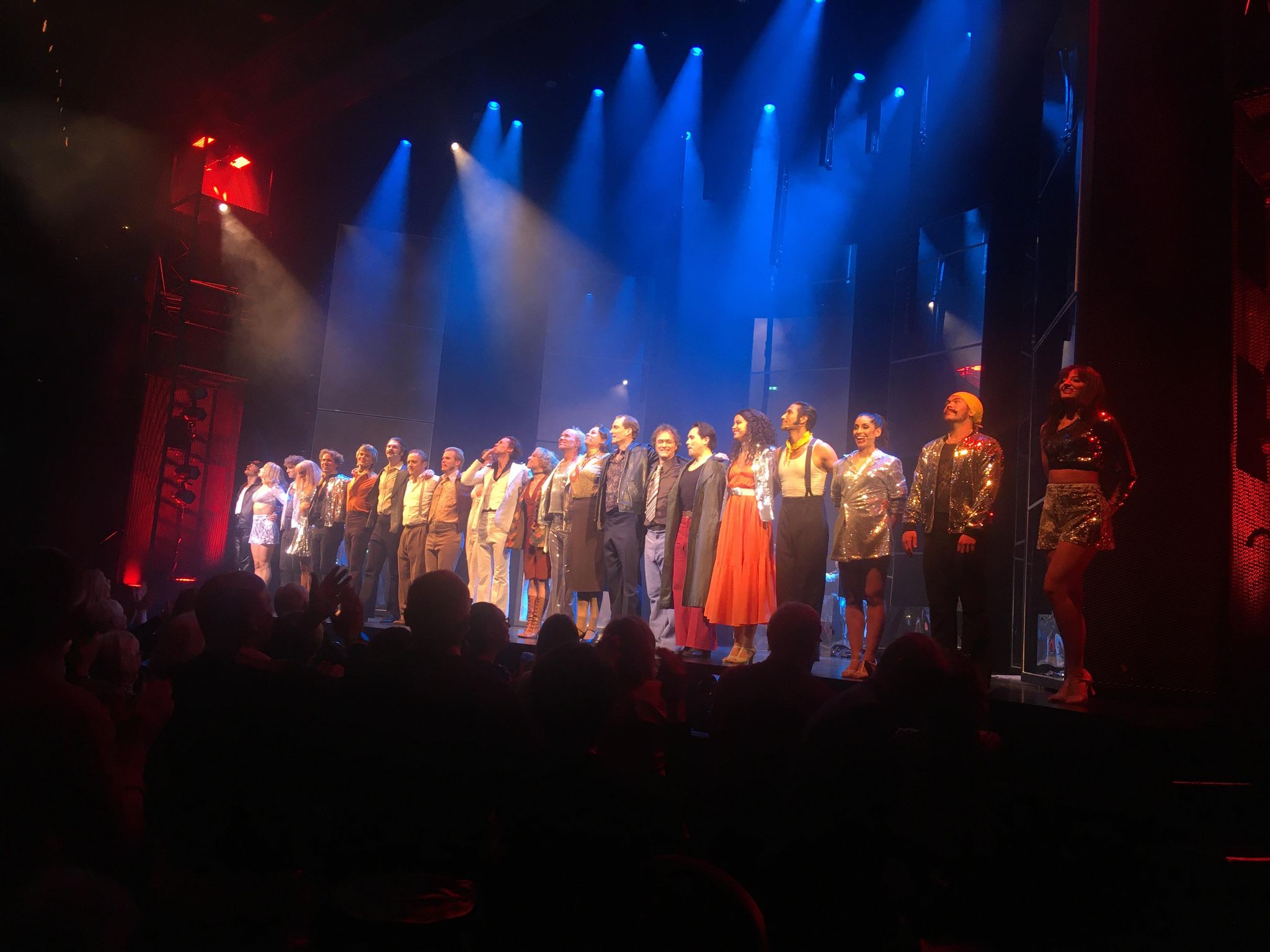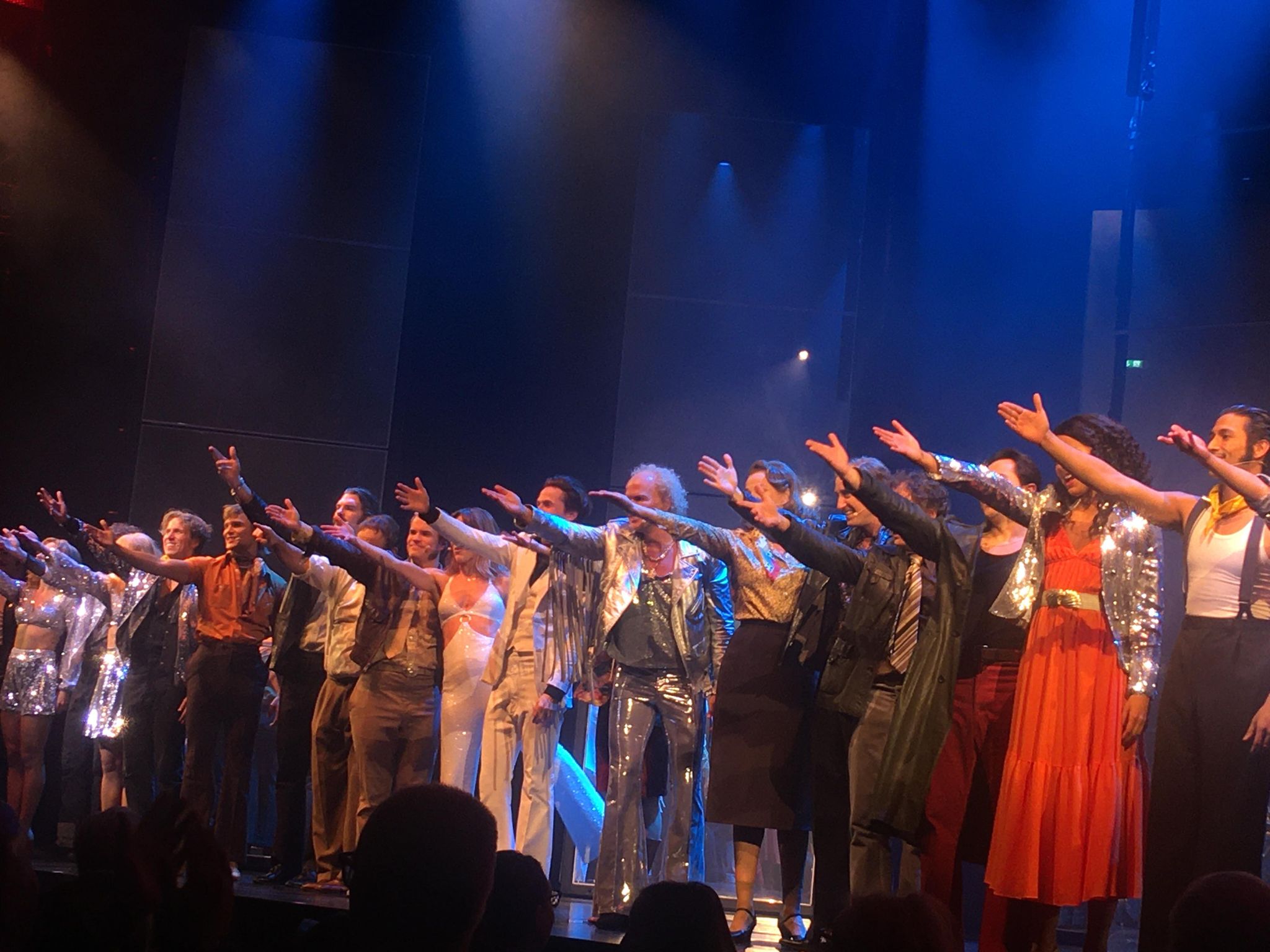 Saturday Night Fever är ju en kavalkad av hitlåtar som Staying Alive, Night Fever, More Than a Woman, Disco Inferno och How deep is your love, men till musikalversionen i London skrevs en ny av Bee Gees, Immortality, som är en av mina favoriter. Precis som på Oscars har man valt att framföra låtarna på engelska och ha replikerna på svenska, vilket funkar för man kan ju alla låtar, men numren och replikerna går inte helt sömnlöst ihop. Det känns mer som en show med många riktigt bra sång- och dansnummer med fantastiska insatser av hela ensemblen. Koreografin av Jennie Widegren och Zain Odestål är häftig och läcker, glittrig disco som sprider dansglädje och energi. Riktigt imponerad blev jag av Rikard Björks Tragedy som var smärtsam och rakt in i hjärtat.