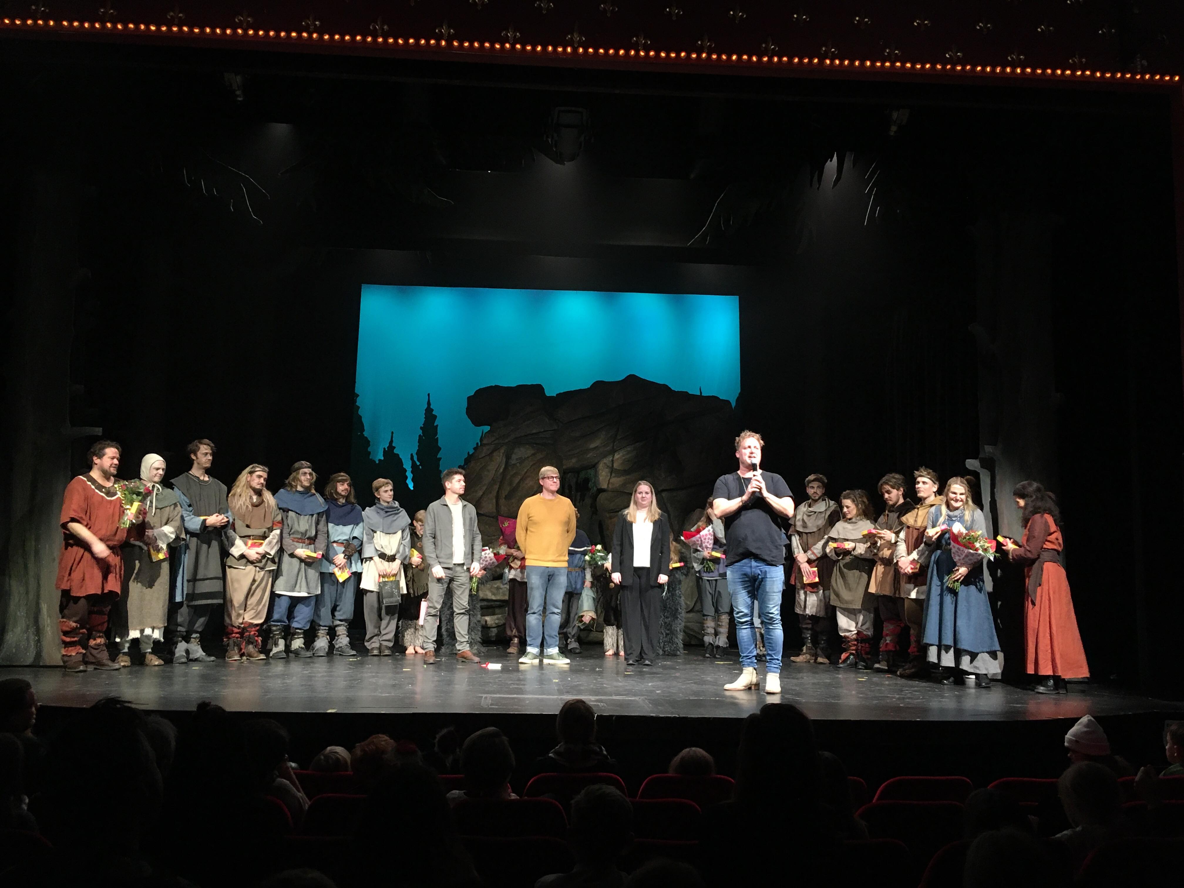 Så intar Mattisrövarna scenen stämmer upp i en av rövarsångerna och magin är igång. Kålle Gunnarsson har förvaltat berättelsen om Ronja med stor kärlek och öm hand och skapat en fantastisk familjeföreställning tillsammans med en starkt och samspelt ensemble. Bella Edberg och Ludvig Ennart imponerar stort som Ronja och Birk och sätter sin egen prägel på dem. Jessica Stendahl som Lovis, Ronjas mamma, får flera gånger med sin klara vackra röst framföra den fina Vargvisan. Jessica har med bravur haft hand om sångarrangemangen och rövarsångerna ljuder mäktigt och samstämt ut över hela salongen när alla rövare tar i med full kraft. Publiken är genast med och klappar i takten.