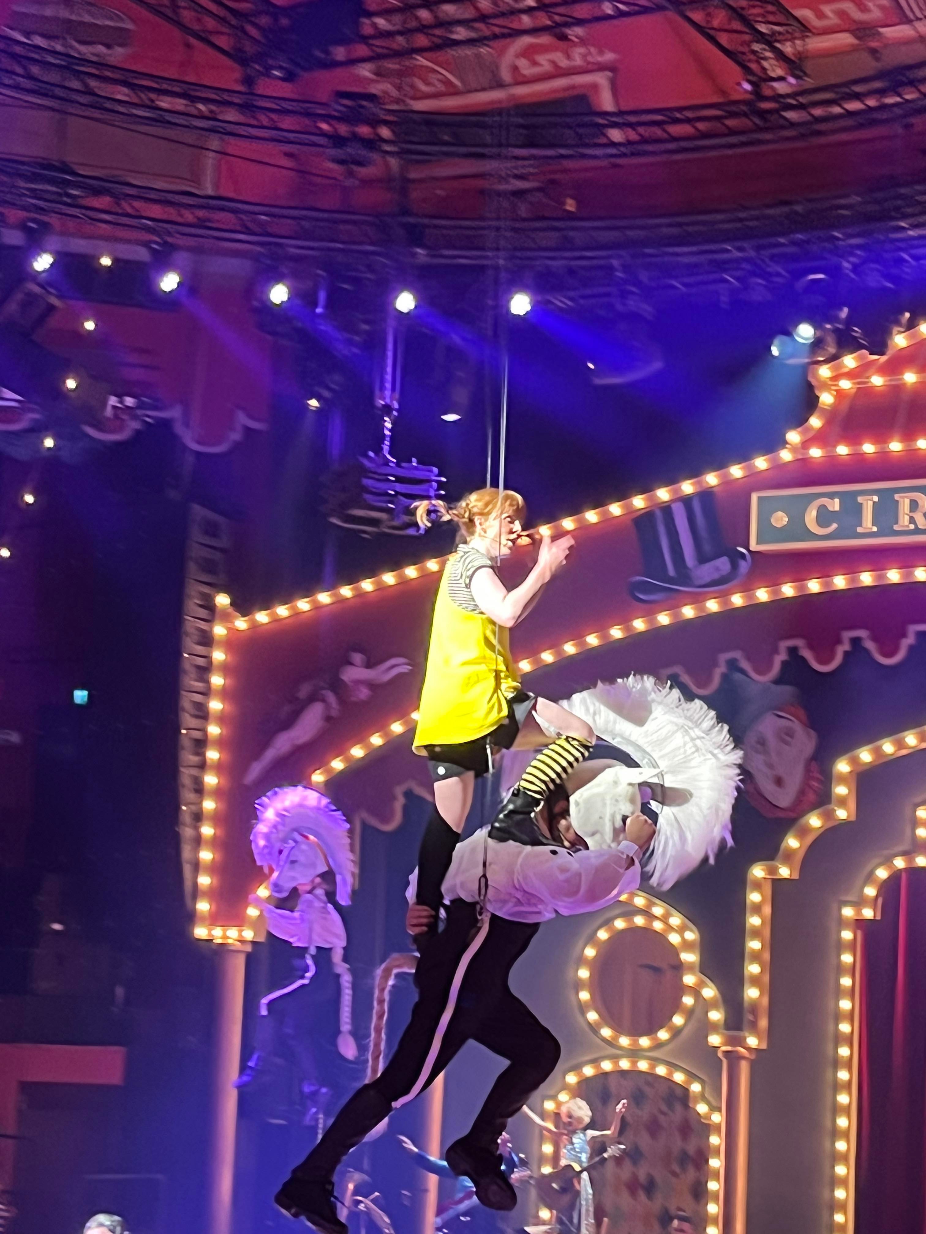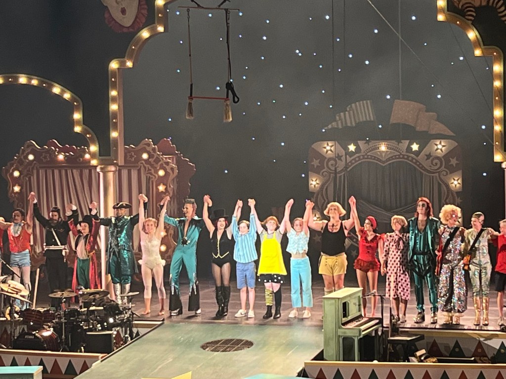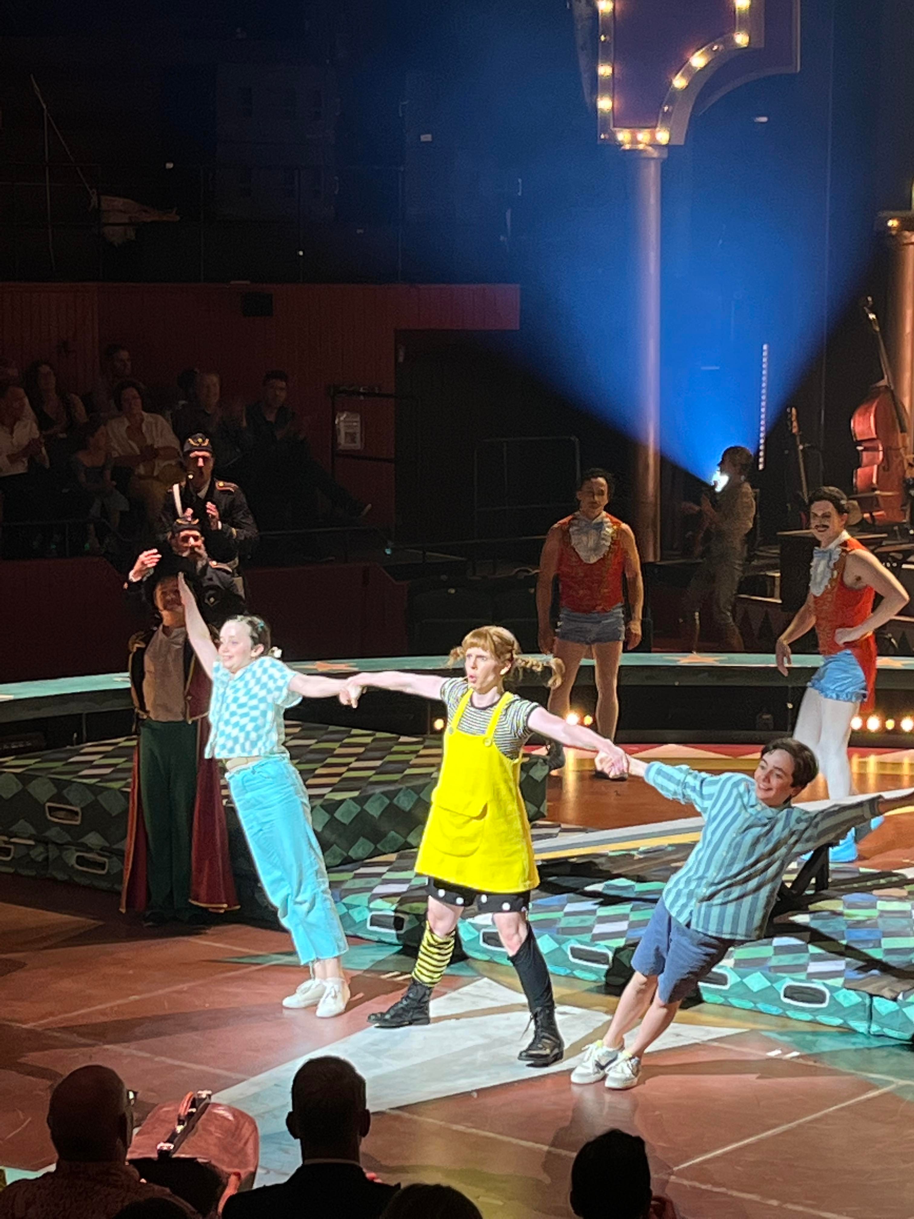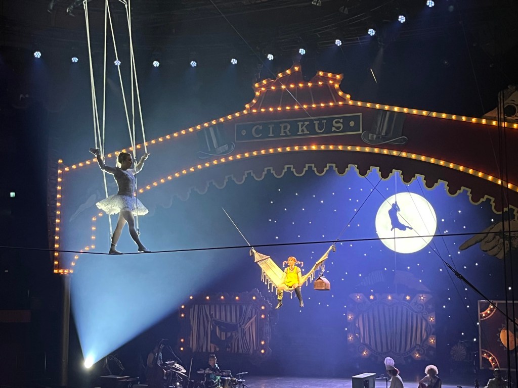 Vi bjöds på ett riktigt glädjepiller till musikal. Full av energi, härlig musik och cirkuskonster som verkligen lyfte hela musikalen. Att knyta ihop musikal och cirkus i den här föreställning är en riktigt lyckoträff. Tilde Björfors och Maria Löfgren har gjort en fantastiskt jobb med att väva samman cirkus och musikal. Björn Ulvaeus har använt sig av både gammal musik och nyskriven när han har skrivit texten. Underfundiga och roliga texter, genialiskt att rimma på fränkar och räknar för alla känner ju till Pippis inställning till pluttifikationstabellen. För den nyskrivna musiken har han jobbat med Benny Andersson och Benjamin Ingrosso. En av mina favoriter är ”Jag tror jag går sönder” som han skrivit med Benjamin. Den är så söt och underbart framförd av Axel Adelöw som Tommy. En rar sång om kärleken till hundar där cirkusartisterna klädda som pudlar utför akrobatik. Så snyggt!